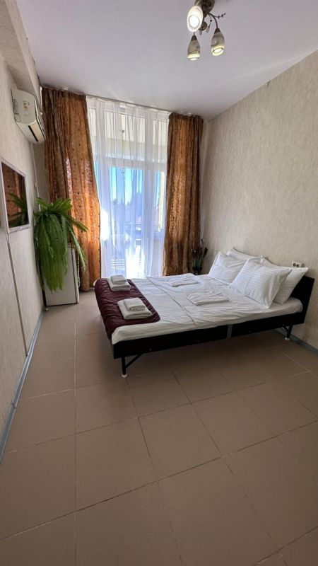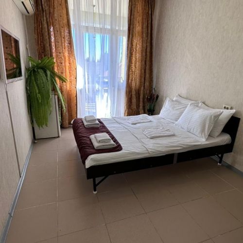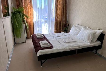 Двухэтажный дом отеля разместился на улице Чкалова. В распоряжении гостей 2-местные однокомнатные номера. Среди удобств – кондиционер, телевизор и холодильник и индивидуальный санузел с душем, а также открытая терраса и сезонный открытый бассейн.